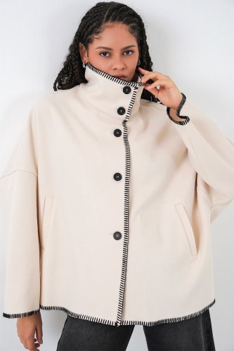 9118 Kruvaze Yaka Kaşe Kaban Ekru