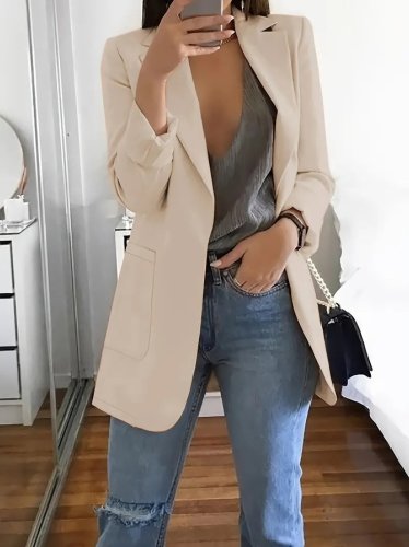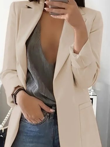 • Kadın uzun kollu yakalı düğmesiz cepli atlas blazer ceket