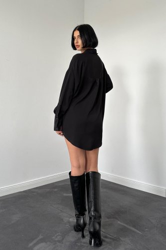 Siyah Jesica Parçalı Bağcıklı Gömlek