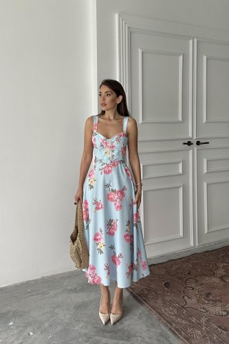 Bebe Mavi İnce Kemer Detaylı Elbise