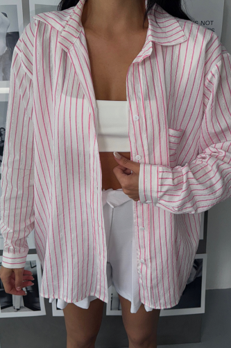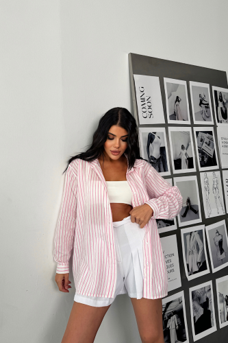 • SİMLİ ÇİZGİLİ VUAL GÖMLEK Pembe