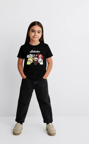 • Kız Labubu Çocuk Baskılı TShirt Siyah