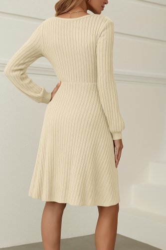 • Kadın uzun kollu kare yaka düğmeli kısa şardonlu iki iplik mini elbise