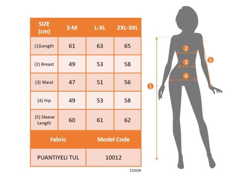 • Modelin Ölçüleri: Boy:165, Kilo:55, Göğüs:90, Bel:72, Kalça: 100