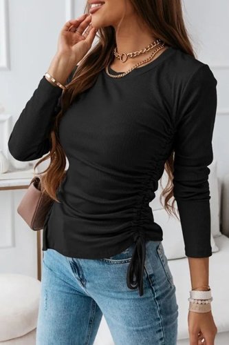 • Kadın uzun kollu bisiklet yaka yanları ve kolları büzgülü kadife bluz
