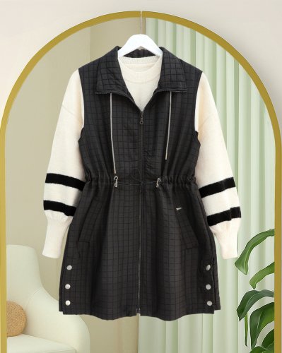 • Yakası Bağcıklı Beli Lastikli Cepli Kapitone Yelek Siyah