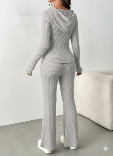 • Kadın uzun kollu kapşonlu önden fermuarlı kaşkorse bluz ve pantolon ikili takım