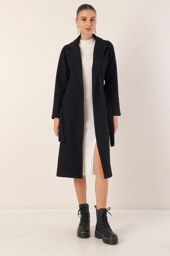 • 9118 Kruvaze Yaka Kaşe Kaban Siyah