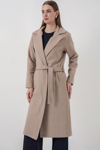 • 9118 Kruvaze Yaka Kaşe Kaban ABej