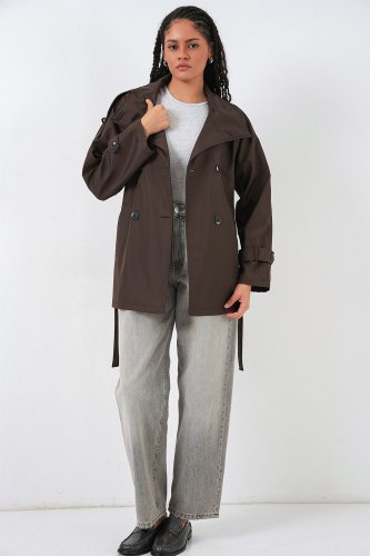• Kruvaze Yaka Kısa Trençkot 5980 Kahverengi