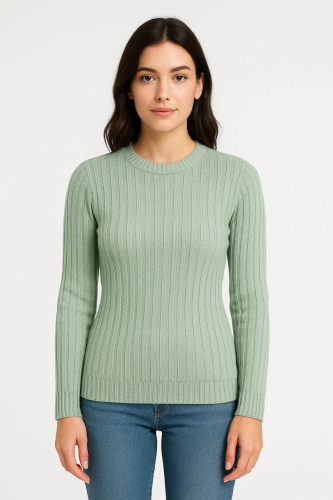 Erkek Bisiklet Yuvarlak Yaka Triko Kazak Pamuklu Kalın Fitilli Dokuma Regular Fit Uzun Kollu Kışlık Model Mint Yeşili