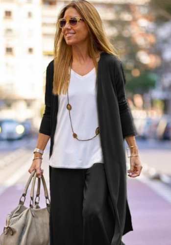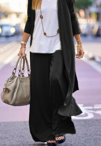 Kadın uzun kollu önü açık viskon ceket ve pantolon ikili takım