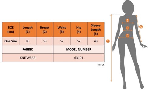 • Modelin Ölçüleri: Boy:165, Kilo:55, Göğüs:90, Bel:72, Kalça: 100
