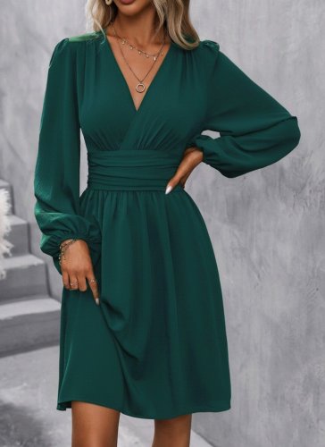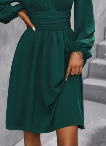 • Kadın uzun kollu kruvaze yakalı bel korsajlı mini elbise