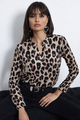 • Kadın uzun kollu v hakim yakalı leopar desenli süprem bluz