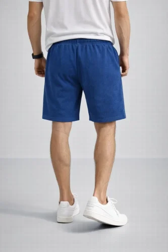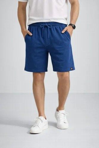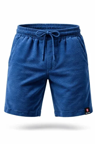 Erkek otoban Dokuma Şort Beli Lastikli Bağcıklı Cepli Rahat Kesim Günlük Yazlık Şort İndigo
