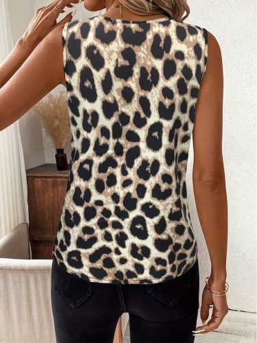 Kadın askılı v yakalı leopar desenli süprem bluz