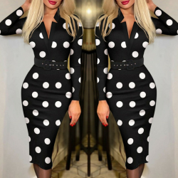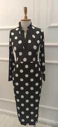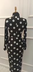 • Kadın siyah Uzun kollu v yakalı puantiyeli midi dalgıç elbise