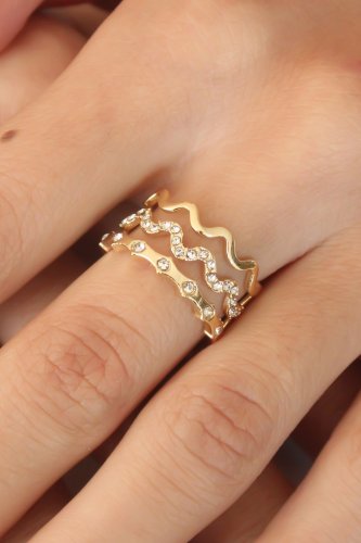• Gold Renk Ayarlanabilir Dalgalı Kadın Yüzük