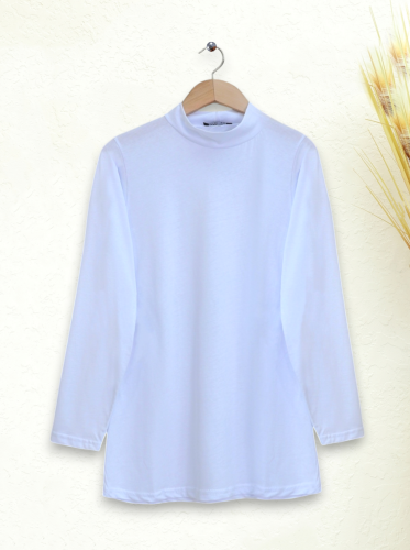 Yarım Boğazlı Uzun Kollu Bluz Beyaz